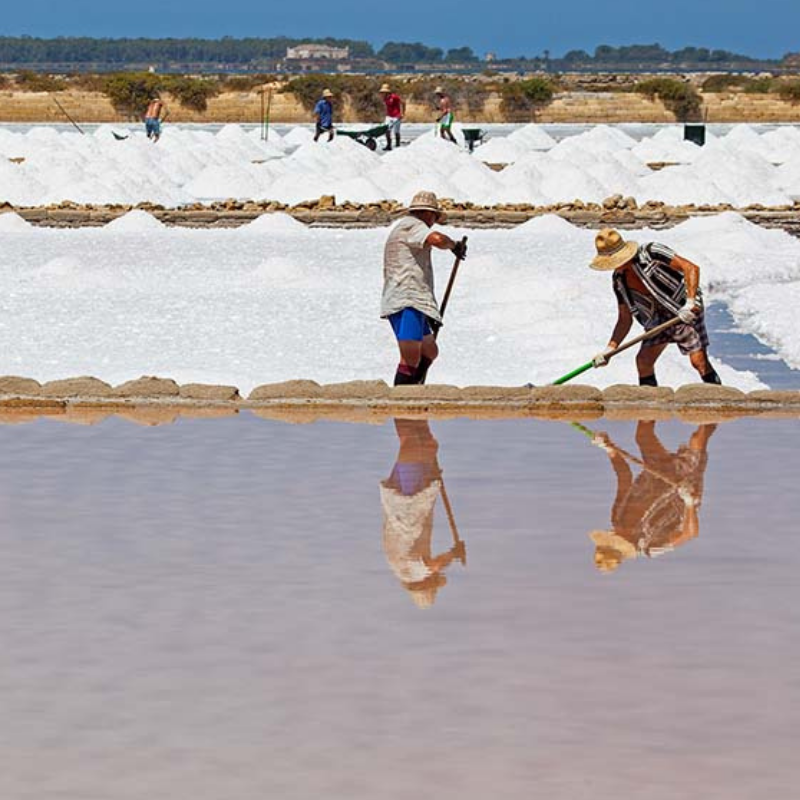 I Soffi di Sale sono una rarità preziosa della natura: un sottilissimo velo di sale che affiora sulla superficie delle vasche salanti solo nelle giornate perfette, quando mare, sole e vento si armonizzano in equilibrio.