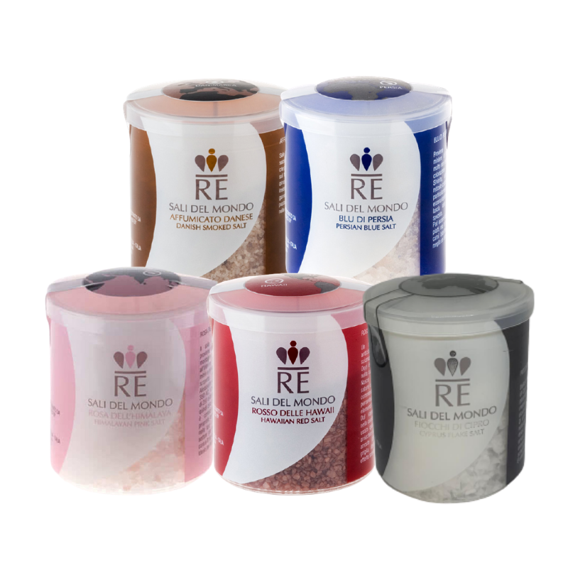 Un viaggio sensoriale attraverso i sali più iconici e pregiati del pianeta. Il Box Degustazione “Sali del Mondo” firmato RE-Sale propone una selezione esclusiva di 5 sali internazionali, ognuno con caratteristiche uniche per gusto, origine e aspetto.