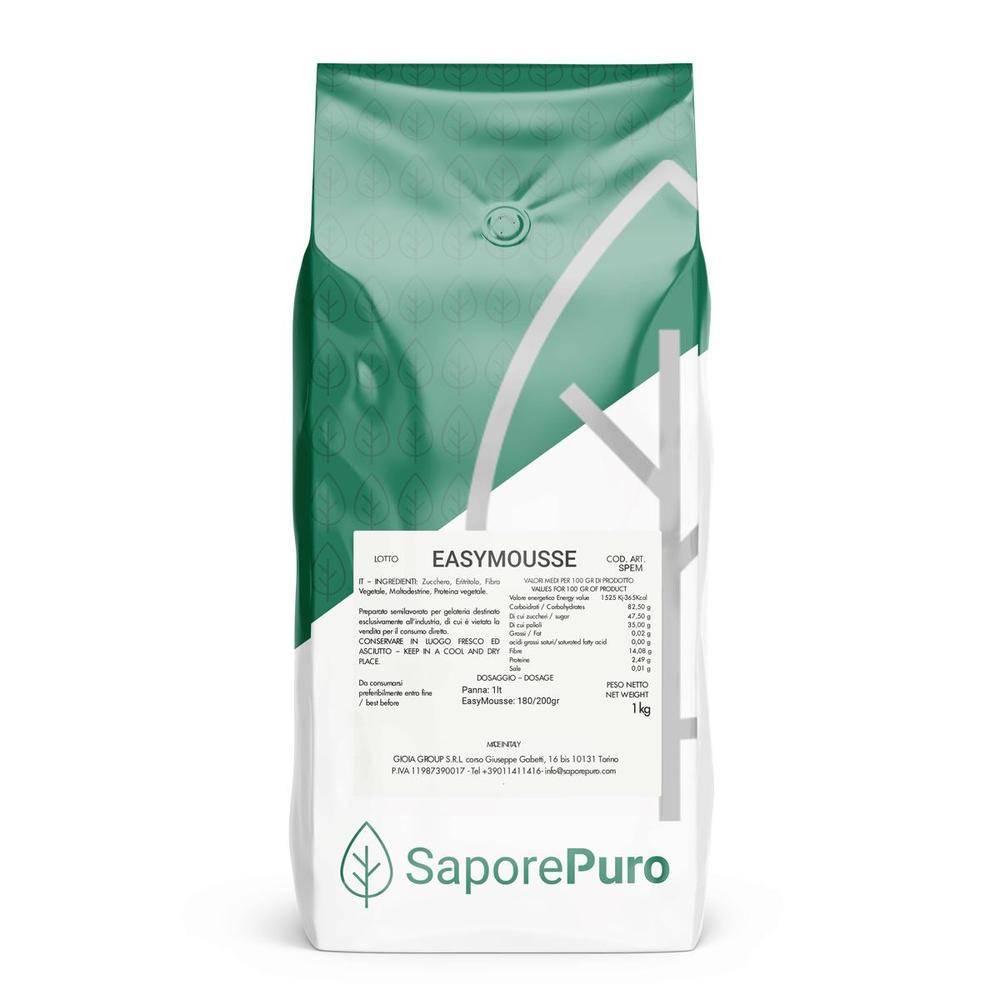 EasyMousse, un'innovazione culinaria dai laboratori di SaporePuro, è una miscela bilanciata di vari zuccheri, fibre vegetali e proteine vegetali, progettata per elevare la tua esperienza culinaria al livello successivo.